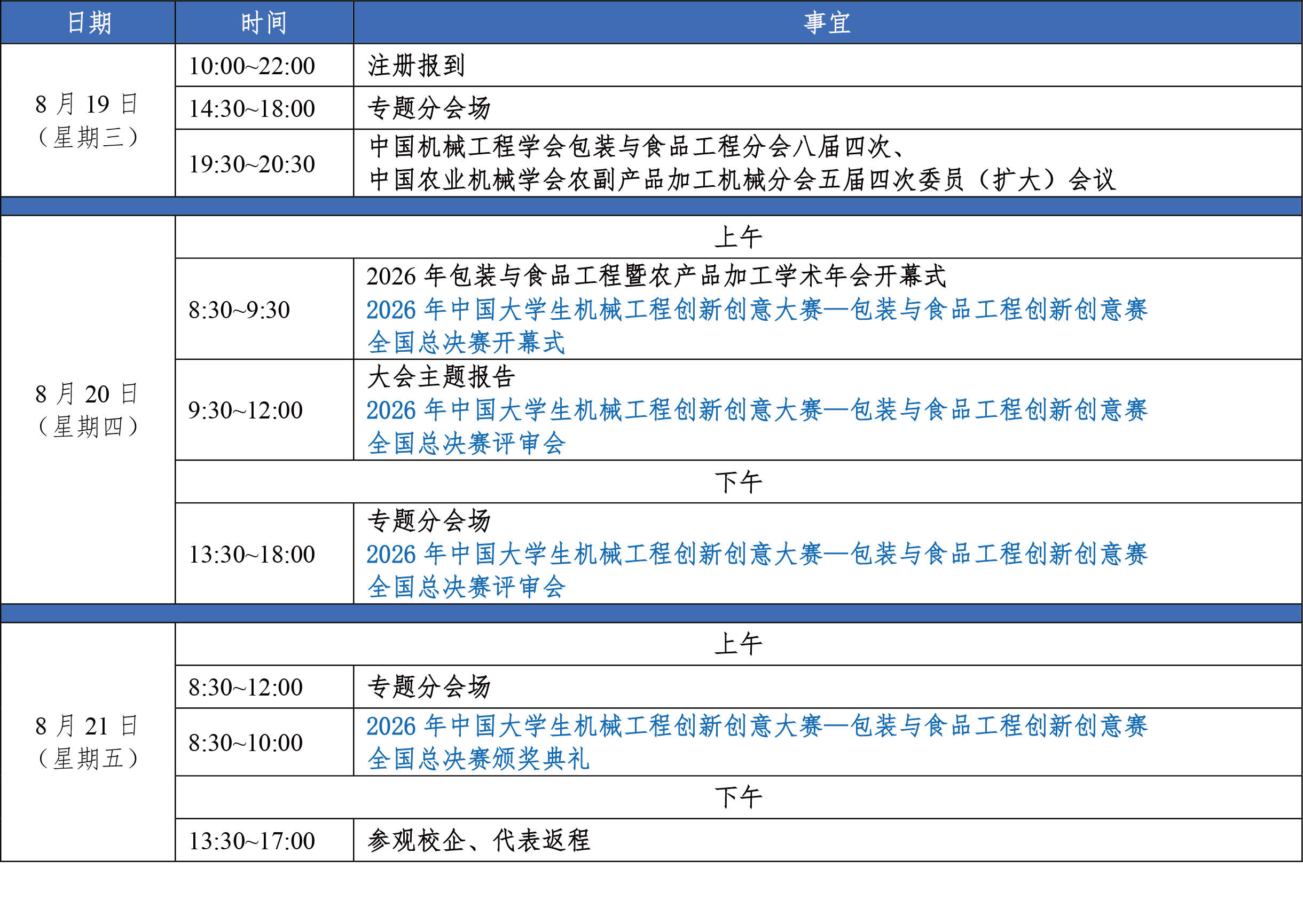 1. 本次年会面向全国征集包装工程、食品工程等相关论文并择优在《包装与食品机械》(北大中文核心期刊)录用,计划2026年8月出版,免收版面费。
